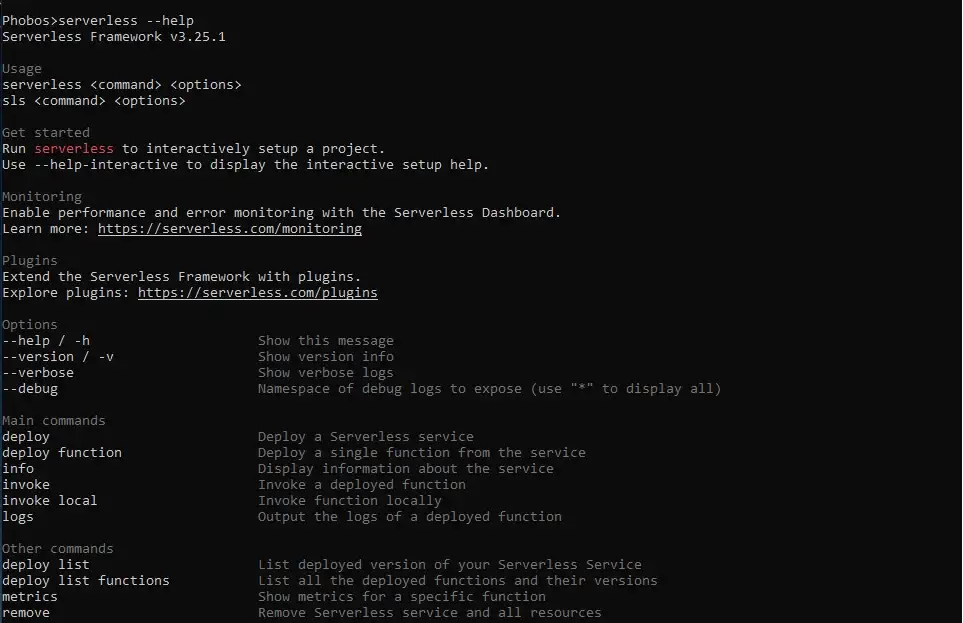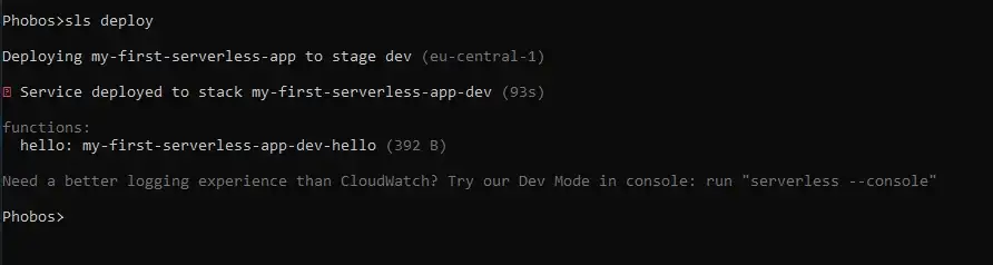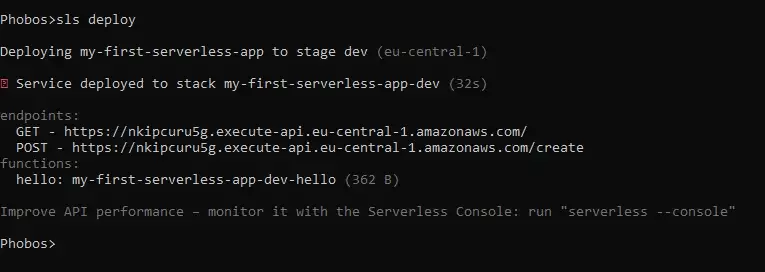 To keep things simple we’ll use sls command (short for serverless) from now on.