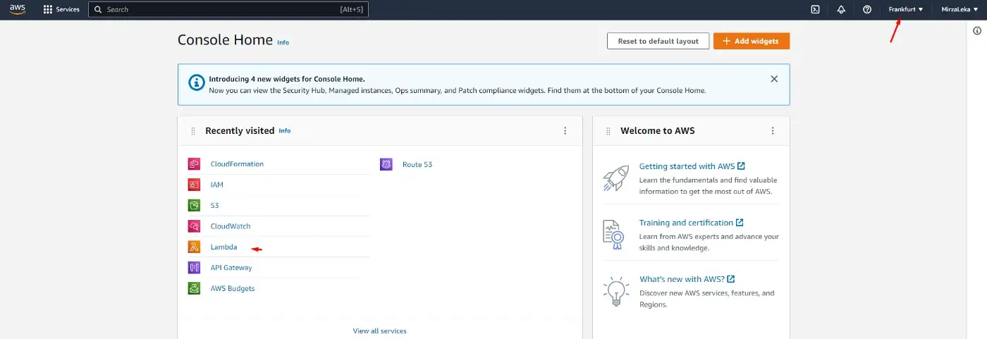 Clicking on the function (blue rectangle) will take us to the AWS Lambda screen.