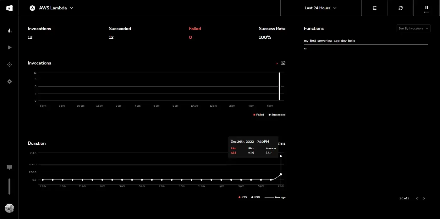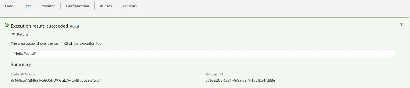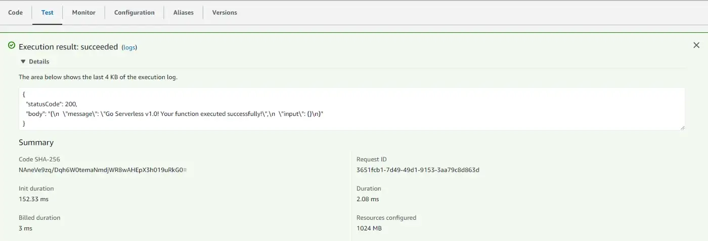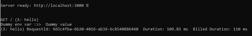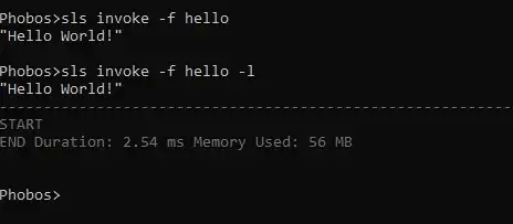 $ sls invoke -f hello -l // where -f stands for function and -l for logs