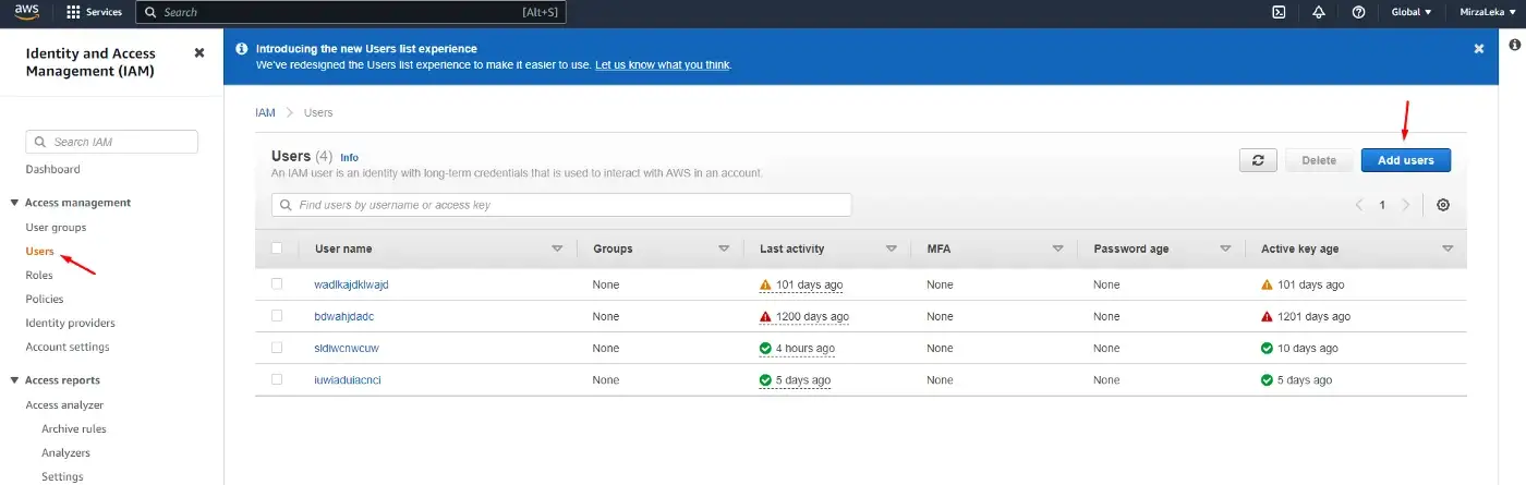 Step 2: Click on the Users (under Access Management) in the sidebar on the left, then click on the Add users button to the right.