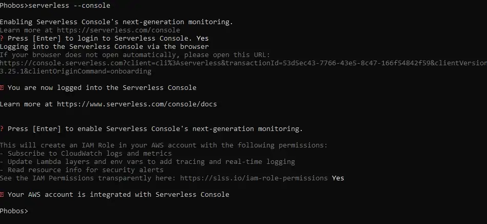 After that, we sign up to Serverless via the terminal using the credentials we’ve just generated. (sls is short for serverless)