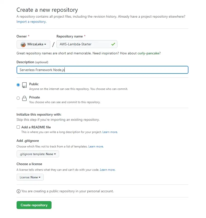 Another way we can do this is by creating an AWS Node.js template and optionally defining the