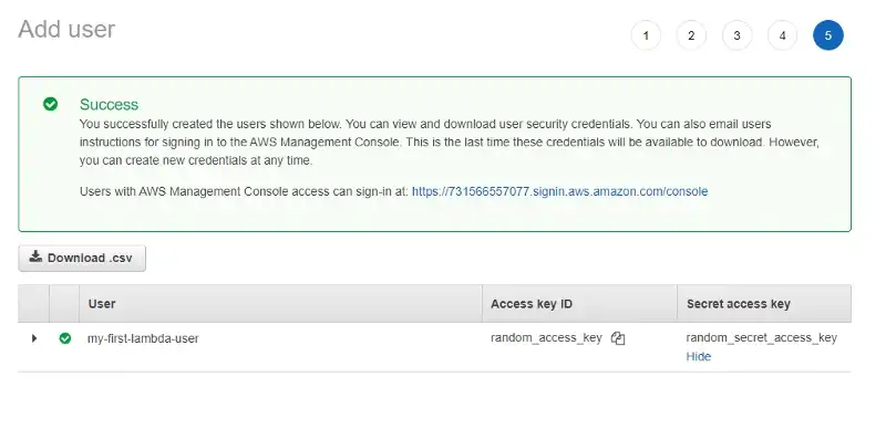 AWS will only show this credentials to us once and never again. If we lose them, we need to generate new. And also to not share this with anybody.