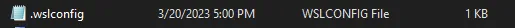 Once there, check if the file .wslconfig exists; if it doesn't - create it and it should look like the one in the picture below: