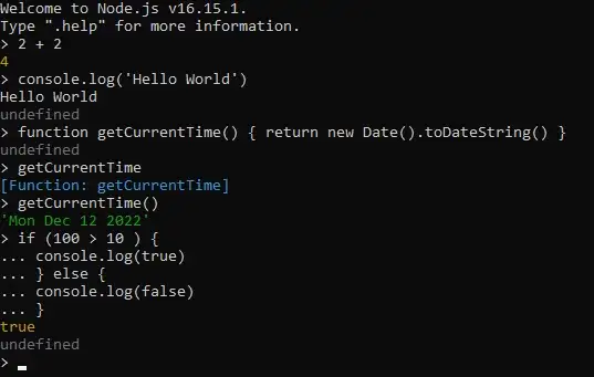 Let’s start simple. Open up your terminal (cmd) window and type node.